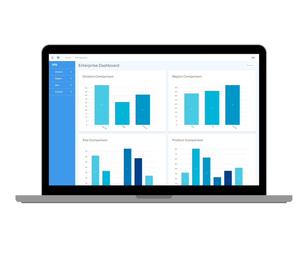 Assessment scores grouped by division, region, site and product so you can easily compare across your enterprise