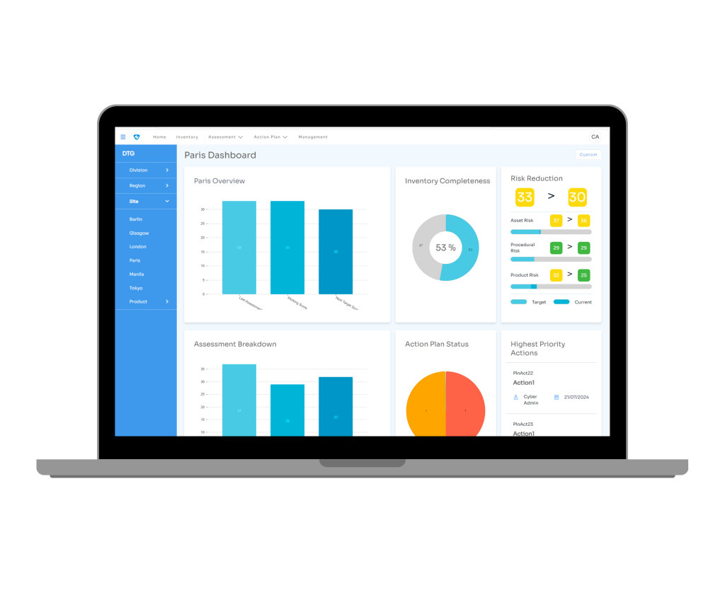 Inventory, assessment and action plan data presented simply on graphical dashboardsÂ
