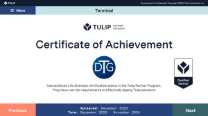 We’re delighted to announce that DTG has been certified as a Tulip Life Sciences Delivery Partner.